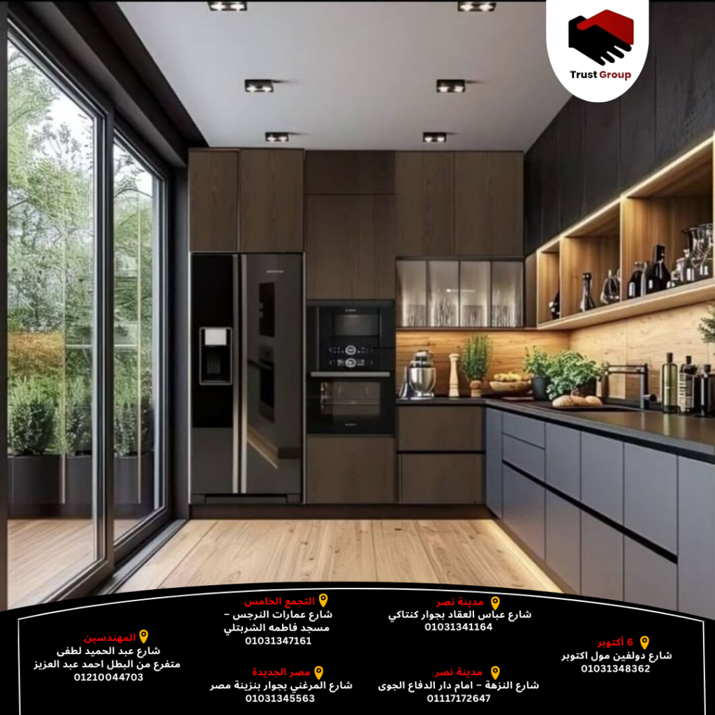 شركة تراست جروب للمطابخ والدريسنج روم فرع مدينة نصر : 2 عمارات السعودية – شارع النزهة – امام دار الدفاع الجوى التليفونات : 26901129 – 01117172647 فرع المهندسين : 23 شارع عبد الحميد لطفى – متفرع من البطل احمد عبد العزيز – امام بنك CIB التليفونات : 33368938 – 01210044703 فرع مدينة نصر: شارع عباس العقاد بجوار كنتاكي التليفون : 01031341164 فرع مصر الجديدة : شارع المرغني بجوار بنزينة مصر التليفون : 01031345563 فرع اكتوبر: دولفين مول اكتوبر التليفون : 01031348362 فرع التجمع: عمارات النرجس – مسجد فاطمه الشربتلي التليفون : 01031347161