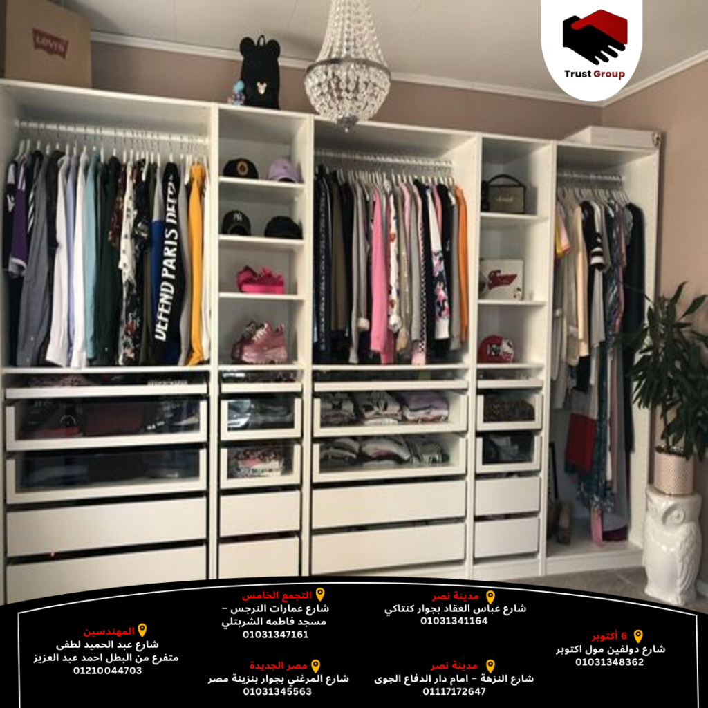 مش كل مفتوح يعني عشوائي… التنظيم مفتاح النجاح تراست جروب تصمم لك دولاب مفتوح كبير بخطة توزيع مدروسة