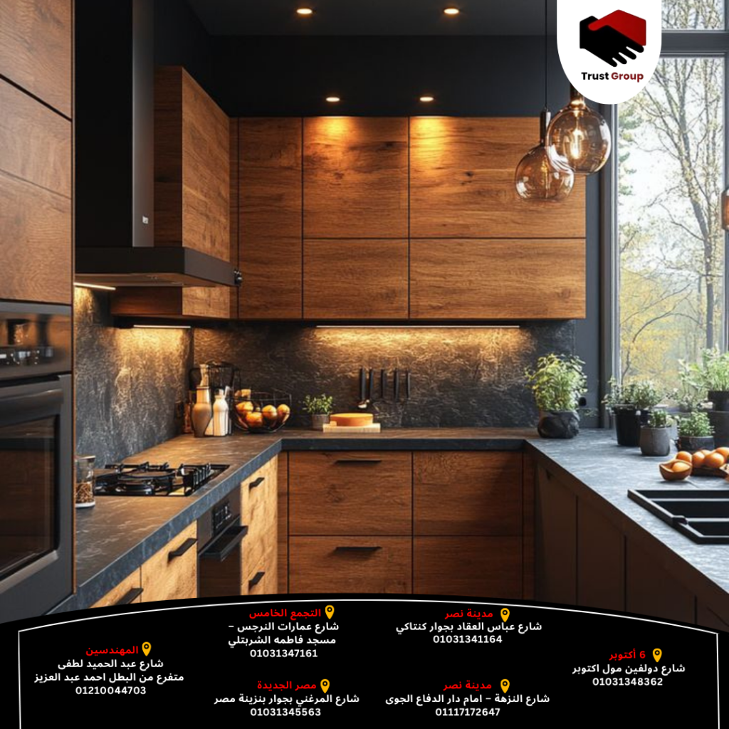 الرمادي بيدّي مظهر عصري وهادئ خصوصًا لما يتمازج مع الخشب الطبيعي تراست جروب بتقدملك مطابخ رمادي بتصميمات متوازنة بين الأناقة والعملية كل تفصيلة بتتنفذ بعناية عشان مطبخك يبقى أنيق وعملي