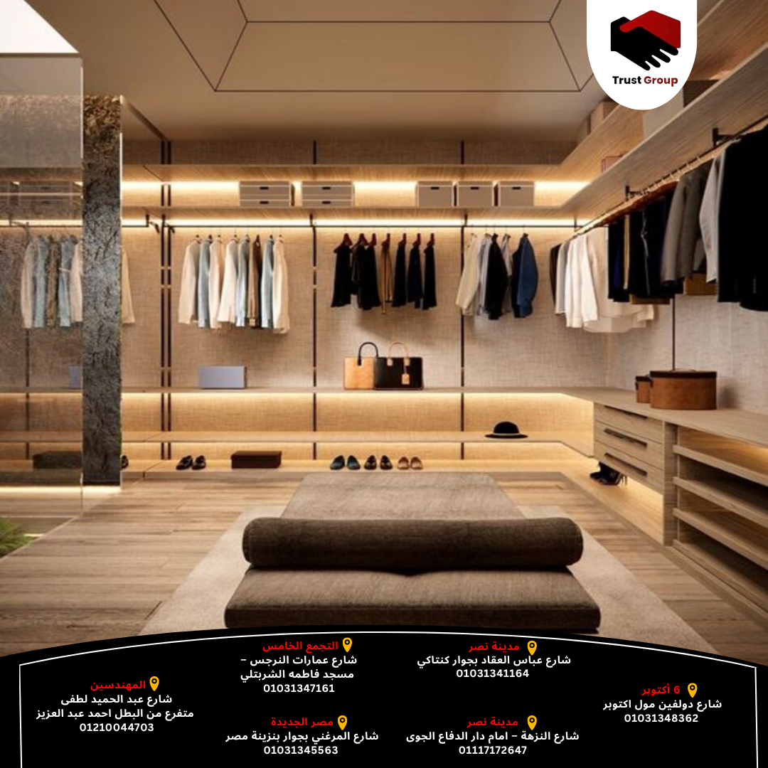 في تراست جروب، نؤمن بأن لكل عميل ذوقًا خاصًا، لذلك نوفر مجموعة متنوعة من تصميمات الدريسنج روم التي تناسب كافة الاحتياجات سواء كنت تبحث عن تصميم عصري، كلاسيكي،فإن فريقنا المتخصص مستعد لتقديم استشارات مجانية وتصميمات مخصصة تجعل مساحتك فريدة من نوعها شركة تراست جروب للمطابخ والدريسنج رومفرع مدينة نصر : 2 عمارات السعودية – شارع …